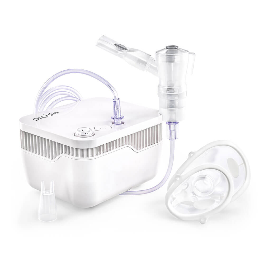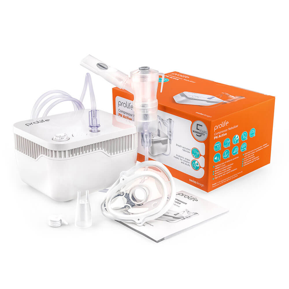 Der einzigartige Vorteil des Kompressorverneblers Prolife PN Active besteht darin, dass er das Medikament einspart, indem er es nur während des Einatmens verbraucht. Neben der Einsparung des Medikaments lässt das Einatmung-Steuermodus die Wirksamkeit der Prozedur erheblich verbessern: Das Medikament wird nur zum Zeitpunkt der Einatmung des Medikaments durch den Benutzer verbraucht und verbleibt zum Zeitpunkt der Ausatmung im Reservoir. Dank der durchschnittlichen Partikelgröße von 3.5 µm eignet sich der Vernebler für die Behandlung von Erkrankungen der oberen und unteren Atemwege. Dank der hohen Sprühgeschwindigkeit — 0.37 ml/min — verläuft die Prozedur genug schnell. Dank einer 1.5 m langen Luftröhre, den Masken mit der anatomischen Form (für Kinder und Erwachsene) und einem geringen Geräuschpegel ist die Verwendung des Verneblers komfortabel.